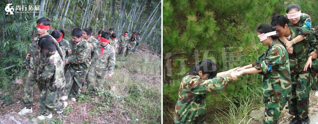 1.所有參加訓(xùn)陳的人人員其中一方全部蒙上眼晴,并且腳上不穿戴任何可以護(hù)腳的東西。然后由每個(gè)小組的另一位隊(duì)員的扶持下走一段崎嶇的路,可能會(huì)有雜草叢生,也可能會(huì)岀現(xiàn)坑坑洼洼的路,這時(shí)候那名隊(duì)員就要帶領(lǐng)所有的參訓(xùn)隊(duì)員由出發(fā)點(diǎn)走到終點(diǎn)。