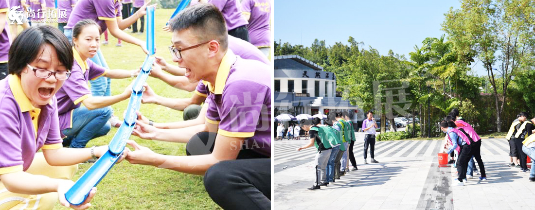 南水北匕調(diào)別稱珠行萬里、合力運水、能量傳輸、無間道、時空隧道、巧取龍珠、引水工程,本項目開始先將所有隊員分成若干個小組,每組隊員手持破開為兩邊的PVC管連接起來形成水槽狀,水將在槽管里流動。成員手中的PVC管接力輸送水,團隊成員不斷連接PVC管,循環(huán)接力直至將水送至指定的目的地。這是一個團隊競爭項目,水在運動的過程中,只能前進不能停止或倒退。水只能在管道內(nèi)運行,不能脫離至地面或接觸身體部位。水通過該隊員設(shè)置的管道時,該隊員不能離開自己的位置,水通過后,方可離開。隊員所持管道在接到水后,只能上下移動,不可左右橫向移動。必須將水安全送到指定的目標(biāo)處。在規(guī)定的時間內(nèi)哪個組將水運輸?shù)米疃?該組將獲勝。