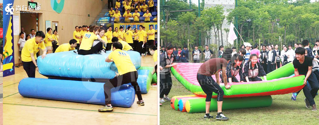 項(xiàng)目介紹:車輪滾滾是一項(xiàng)以小組為團(tuán)隊(duì)的競爭挑戰(zhàn)賽,該項(xiàng)目氛圍比較濃厚,趣味性強(qiáng),是非常受團(tuán)隊(duì)歡迎的一項(xiàng)趣味運(yùn)動項(xiàng)目。8-10人為一個團(tuán)隊(duì),兩人坐在氣墊上面保護(hù)氣球不掉下去, 4-6人往前推氣墊讓氣墊前行,2人不停的抽換柱子,賽程50米。最先到達(dá)者勝出。