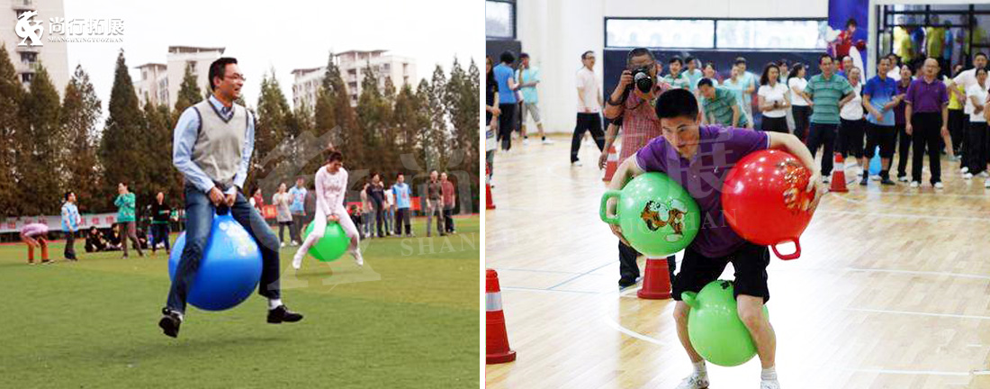 比賽介紹:比賽開始前,參賽隊(duì)員在起跑線上做好準(zhǔn)備,裁判發(fā)令后,隊(duì)員騎著球跳躍前進(jìn),賽程30米,最后用時(shí)最少者為勝。