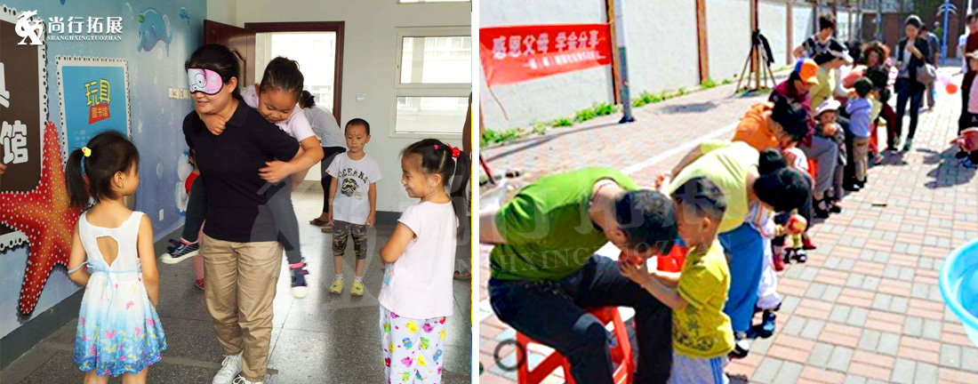 3.爸爸蒙上眼睛,背著孩子,原地轉三圈;