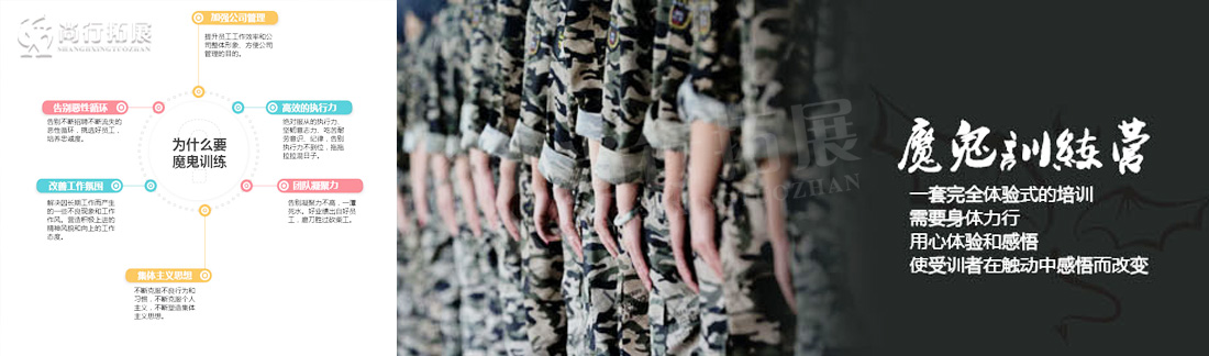 魔鬼訓(xùn)練營讓你體會(huì)從地獄到天堂的感覺,讓你見識(shí)團(tuán)隊(duì)的力量是無堅(jiān)不摧的!如果受過地獄的煎熬,應(yīng)付工作就輕松自如!經(jīng)過痛苦的礪練,實(shí)現(xiàn)目標(biāo)是理所當(dāng)然!
