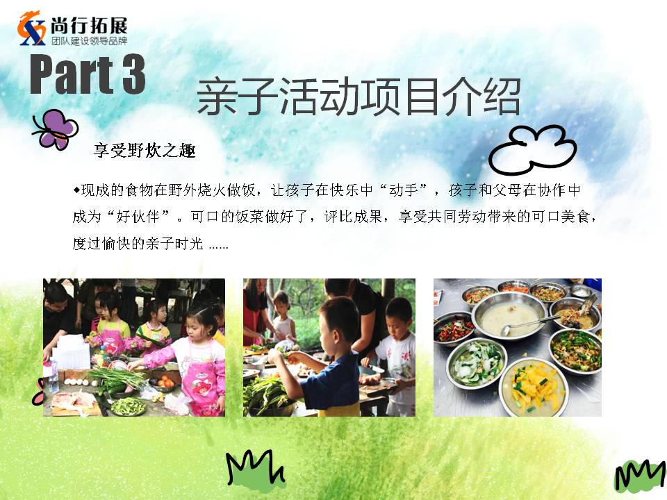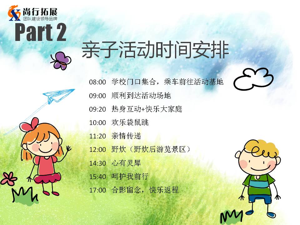 首先,它有利于增進(jìn)家長和孩子之間的情感交流。陽光燦爛的周末與孩子共同進(jìn)行一次別開生面的活動,讓您那顆因工作而疲勞的心得到片刻的安寧,享受陪伴孩子的樂趣!