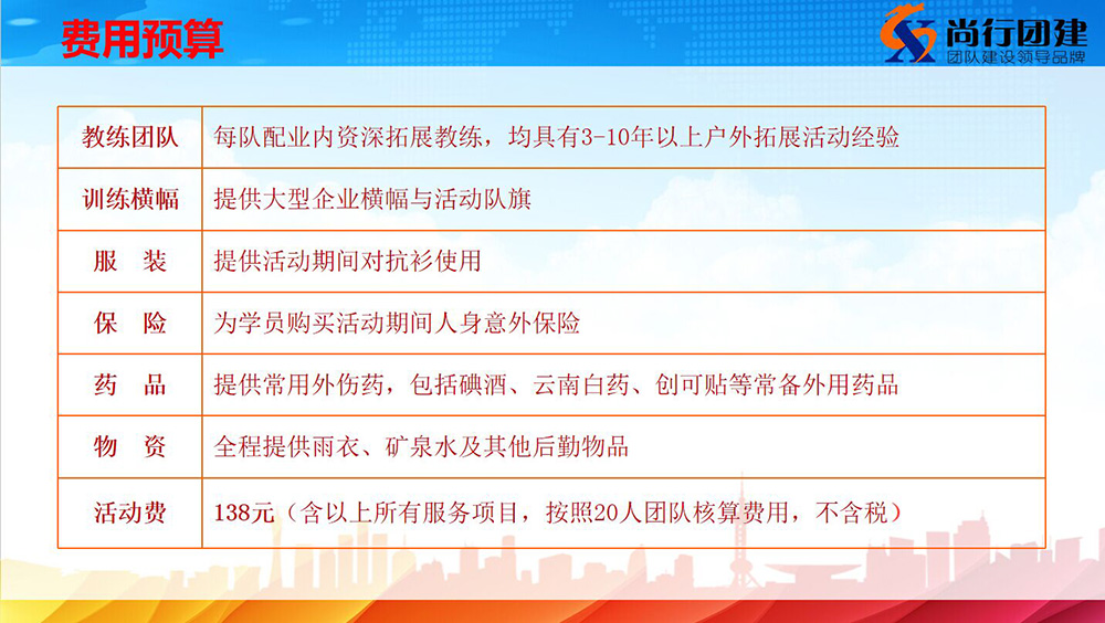 推薦理由:此課程有利于釋放團(tuán)隊(duì)活力 提升團(tuán)隊(duì)凝聚力。千龍湖尚行戶外拓展自營(yíng)基地功能齊全,擁有高空、水上、場(chǎng)地等各項(xiàng)拓展設(shè)施,也是湖南省體育局、湖南省極限運(yùn)動(dòng)協(xié)會(huì)、湖南省長(zhǎng)沙市龍舟協(xié)會(huì)等單位指定的拓展培訓(xùn)基地。