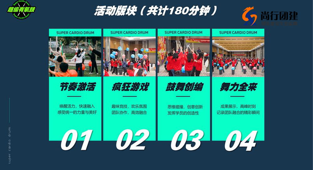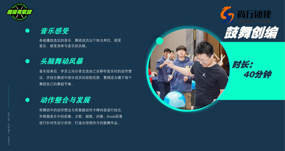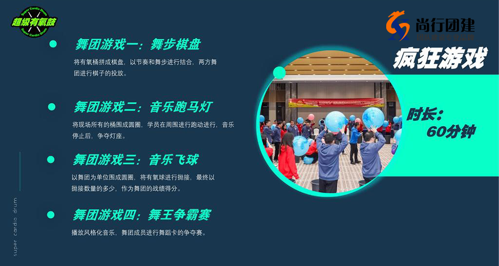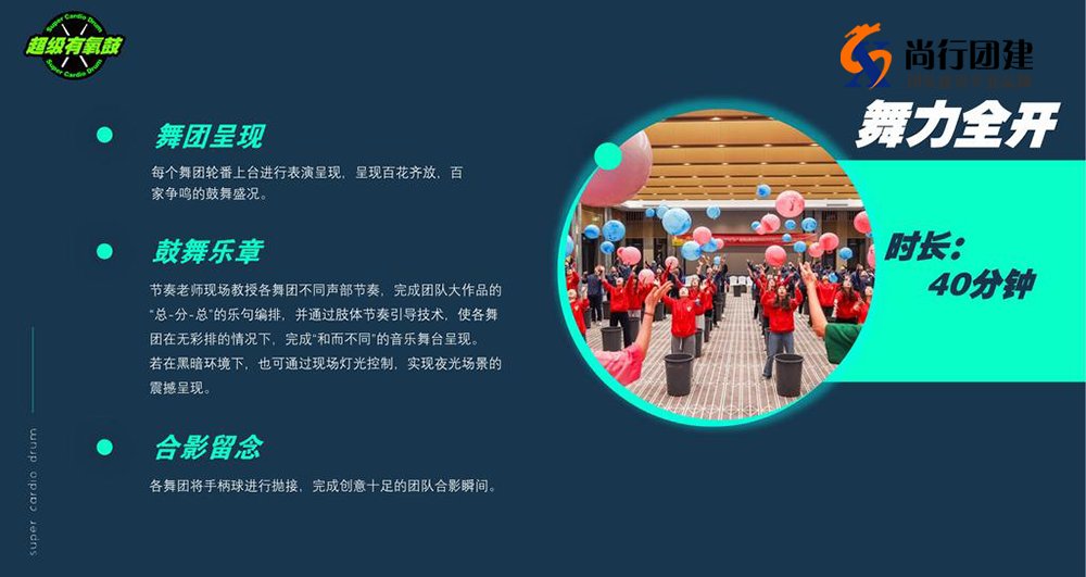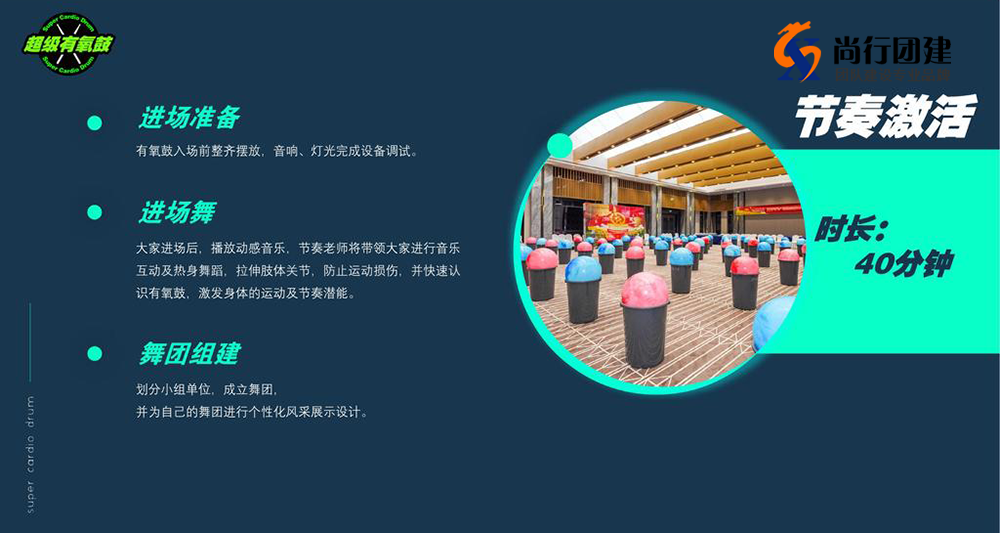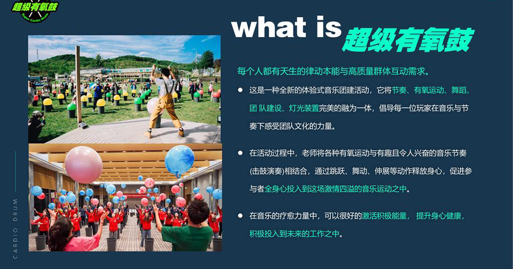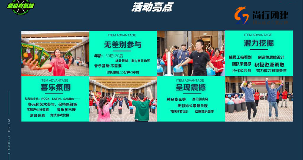 推薦理由:超級(jí)有氧鼓是將節(jié)奏、有氧運(yùn)動(dòng)、舞蹈、團(tuán)隊(duì)建設(shè)、燈光裝置等融為一體的新型體驗(yàn)式音樂團(tuán)建活動(dòng)。這是一種全新的體驗(yàn)式音樂團(tuán)建活動(dòng),它將節(jié)奏、有氧運(yùn)動(dòng)、舞蹈、團(tuán)隊(duì)建設(shè)完美的融為一體,倡導(dǎo)每一位玩家在音樂與節(jié)奏下感受團(tuán)隊(duì)文化的力量。