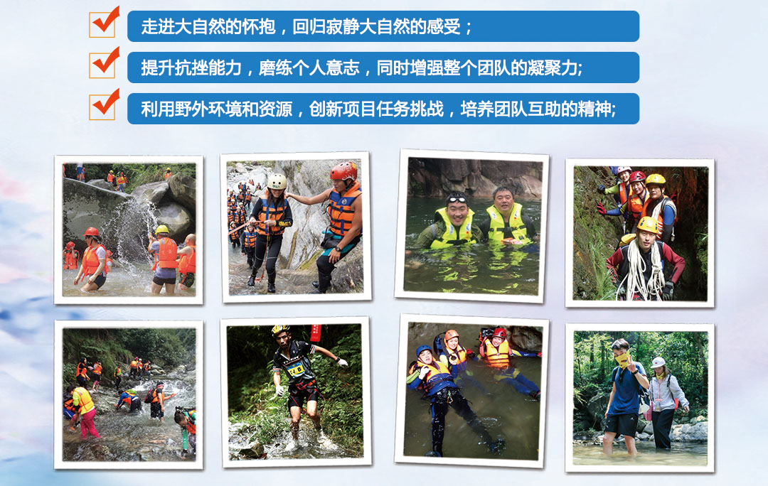 整個團(tuán)隊探險溯溪過程中,享受團(tuán)隊帶來的幫助,以及能夠及時幫助到身邊的伙伴,這是一個集體項(xiàng)目,目的是培養(yǎng)的是伙伴們的團(tuán)隊互助的精神。