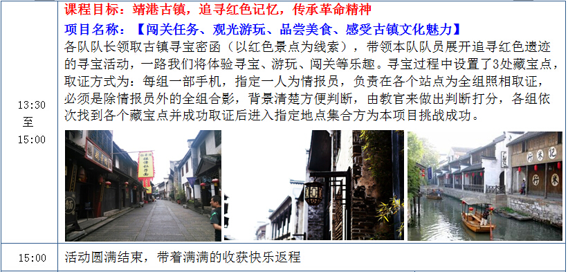 項(xiàng)目大綱:走紅軍路、吃紅軍餐,紅色情景體驗(yàn):擴(kuò)紅(當(dāng)兵就要當(dāng)紅軍)、生死時(shí)速、荊棘排雷、翻越大雪山、尋找黨支隊(duì)、飛奪瀘定橋等。